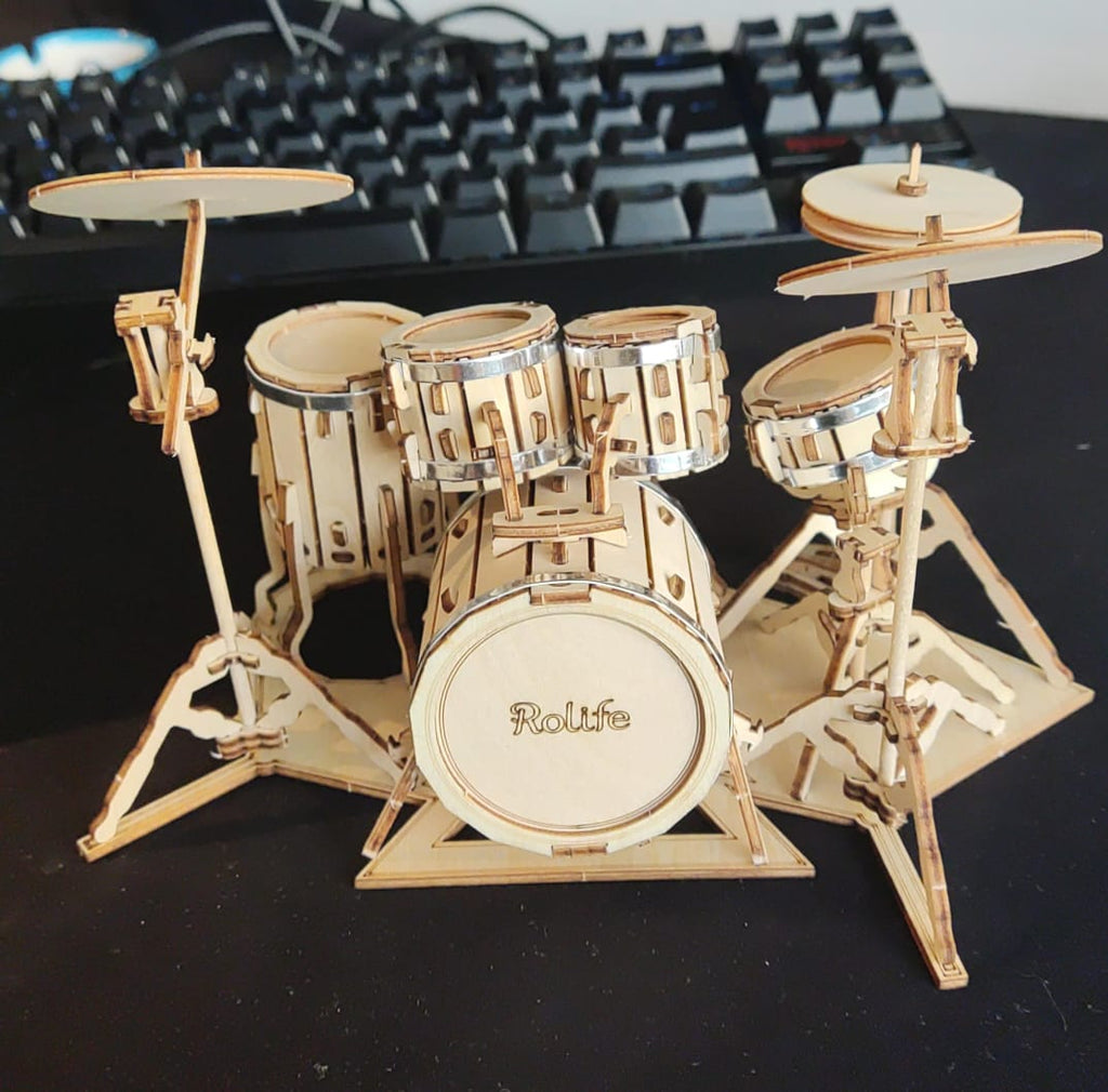 Arma esta batería de madera y disfruta una gran experiencia de construcción tanto para adultos, como para niños, una vez terminado, se va a transformar en una pieza decorativa hecho por ti y de seguro va a llamar la atención tanto en la habitación como en la oficina.