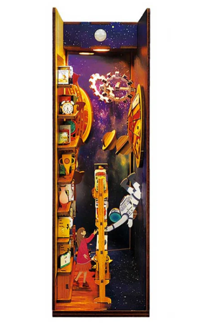 Agrega un toque encantador a tu estante de libros con este separador armable con sensor de movimiento para iluminar tu colección. El separador cuenta con un espejo al final de su recorrido, creando una ilusión de una escena infinita. La iluminaria LED aporta calidez y atmósfera a la escena.