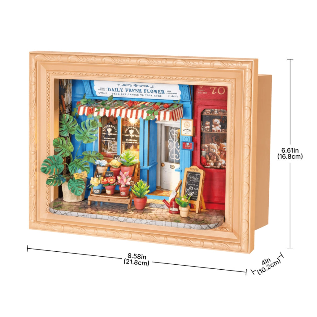 El Daily Fresh Flower DP003 de Rolife es una invitación a detenerte y oler las flores (¡hechas de madera!). Este rompecabezas 3D DIY recrea con asombroso detalle una encantadora floristería de barrio, enmarcada en una elegante caja de sombra con acabados clásicos. Desde las macetas rebosantes de vegetación hasta los pequeños ositos de peluche en el escaparate, cada elemento está diseñado para transportarte a un escenario lleno de paz y alegría artesanal.