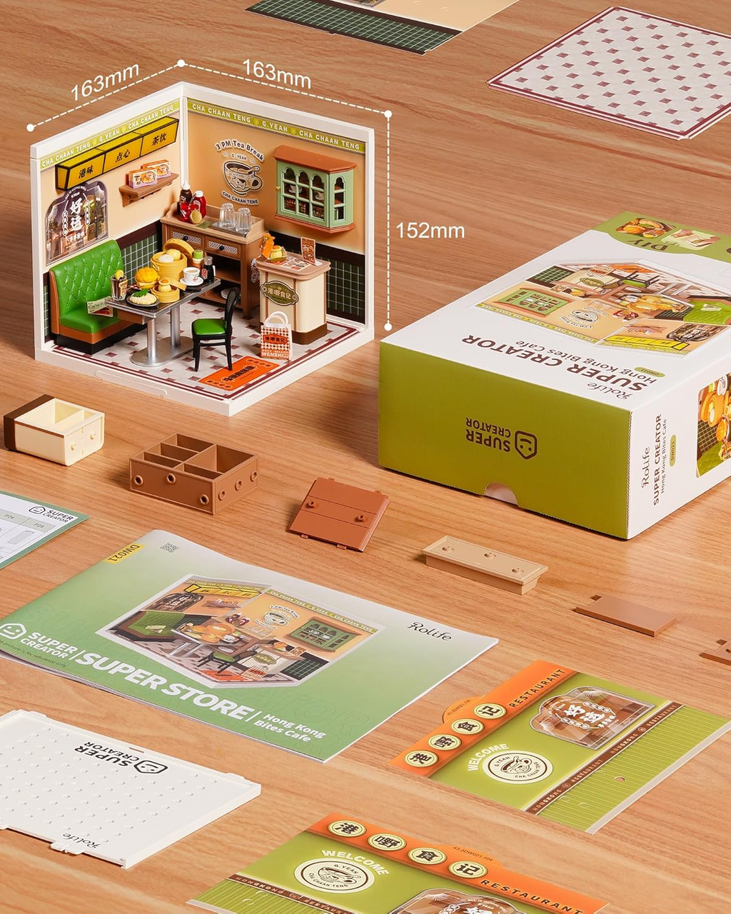 El Rolife Super Creator: Hong Kong Bites Café (DW021) te permite recrear la nostalgia de un auténtico Cha Chaan Teng (café de estilo Hong Kong). Este kit es una de las tres maquetas que, juntas, forman un vibrante mercado nocturno asiático modular.