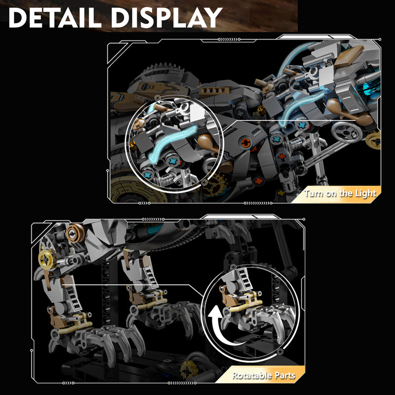 Desata la bestia interior con este impresionante set de Bloques de Construcción MOC (My Own Creation). Este kit te permite ensamblar un Tiranosaurio Rex Mecánico de gran detalle, una figura que fusiona el poder prehistórico con la complejidad de la estética Steampunk y robótica.